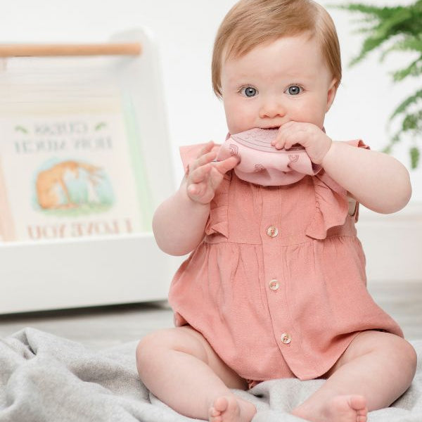 The reversible, absorbent, chewy teething bib.