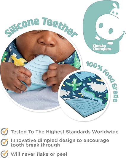 Perfect for any dinosaur lover! This award winning chewy teething dribble bib is packed with smart features to safely ease your baby's teething troubles away.
