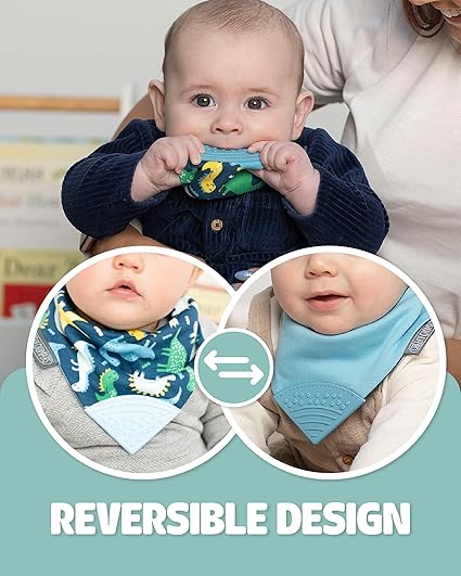 Our premium quality, award winning teething dribble bibs are made with 3 super absorbent layers to catch all those drools and keep your baby dry. What's more the reversible design means you get two baby bibs in one for all day wear and to match a range of outfits.