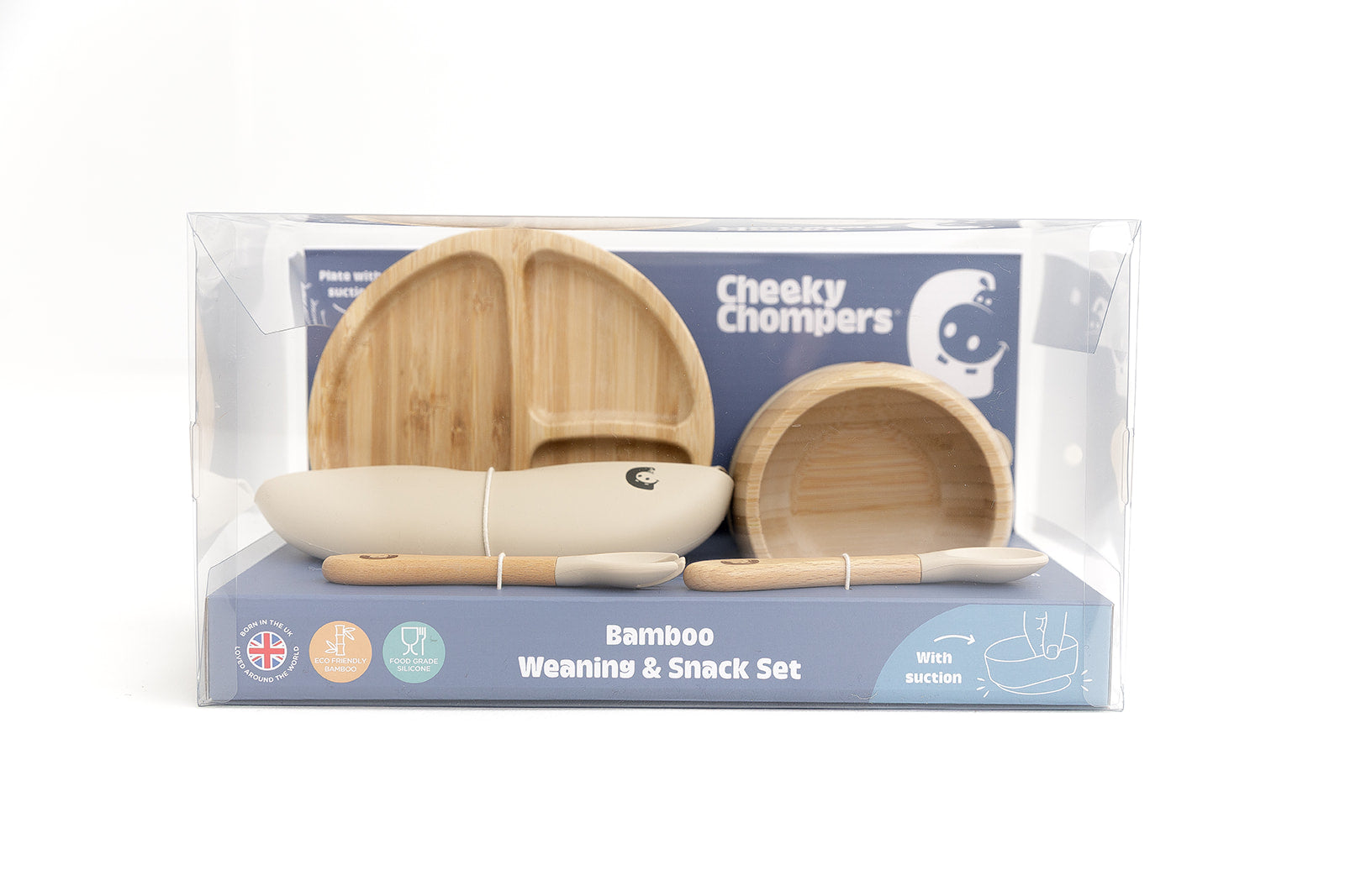 • Bamboo suction bowl – perfect to explore new foods whilst keeping spills to a minimum