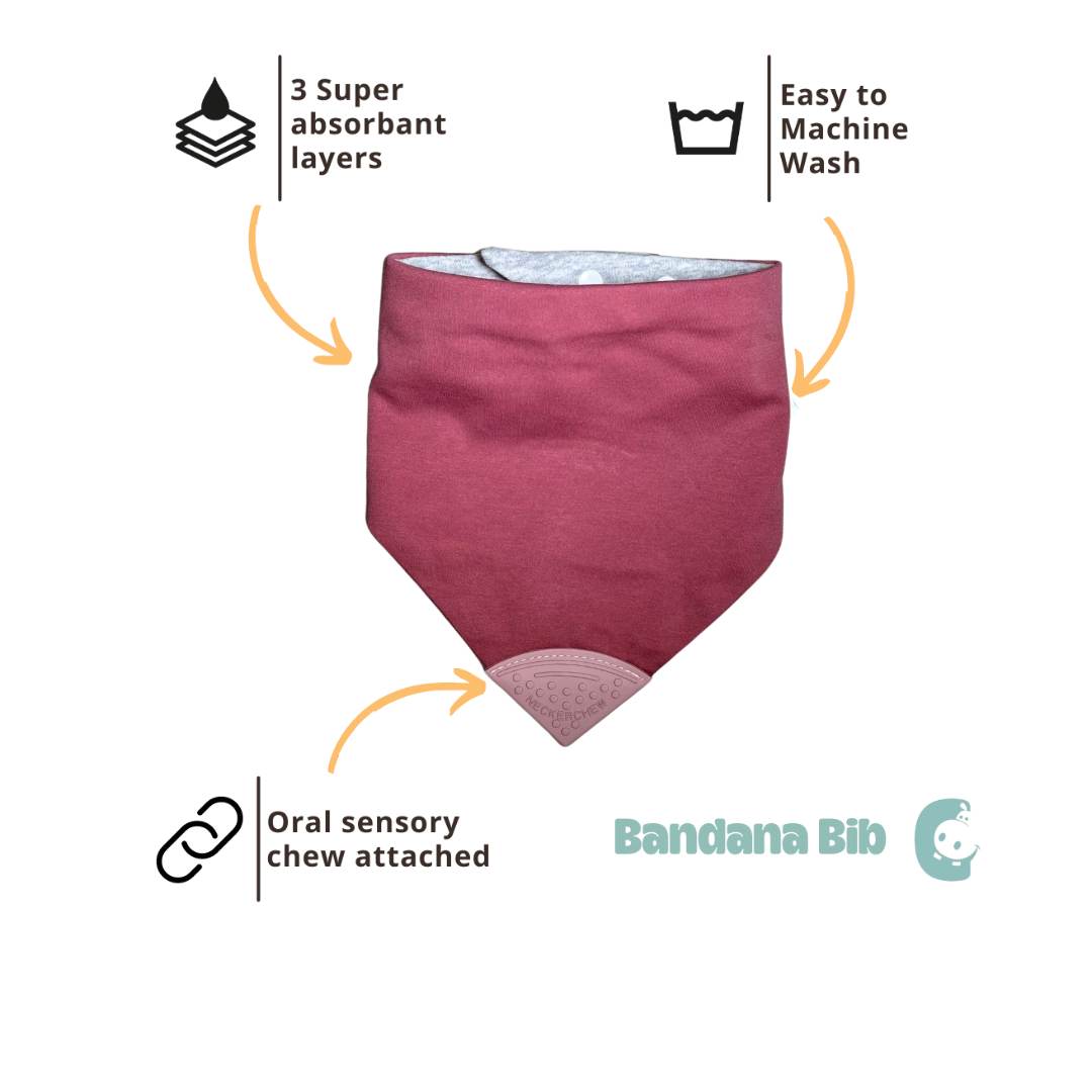 Our all needs Neckerchew with an oral sensory chew is a super absorbent dribble bib.