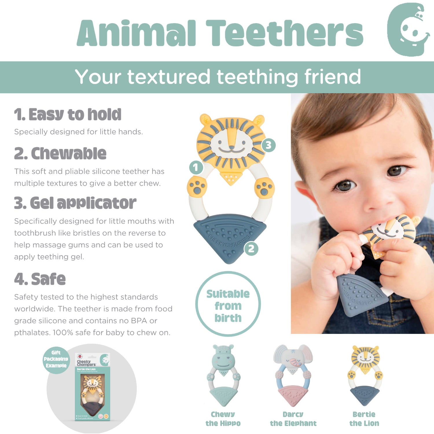 This cute, soft and pliable silicone teether is perfect for young gums to chew on, and designed specially for little hands so it's light and easy for your baby to hold and chew.