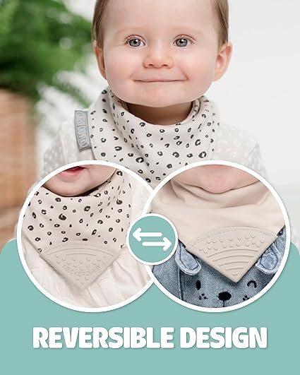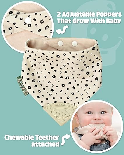 “Would definitely recommend this bib. Lovely design, soft material but totally absorbent, and the attached teether Is a genius idea!