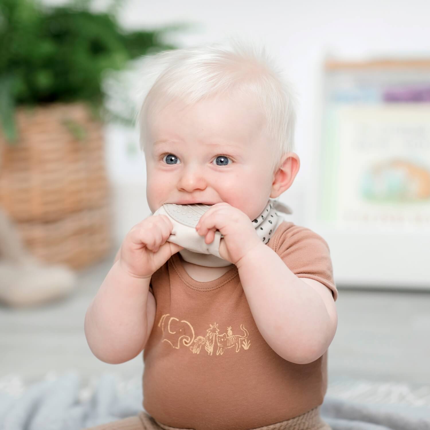This award winning chewy teething dribble bib is packed with smart features to safely ease your baby's teething troubles away.