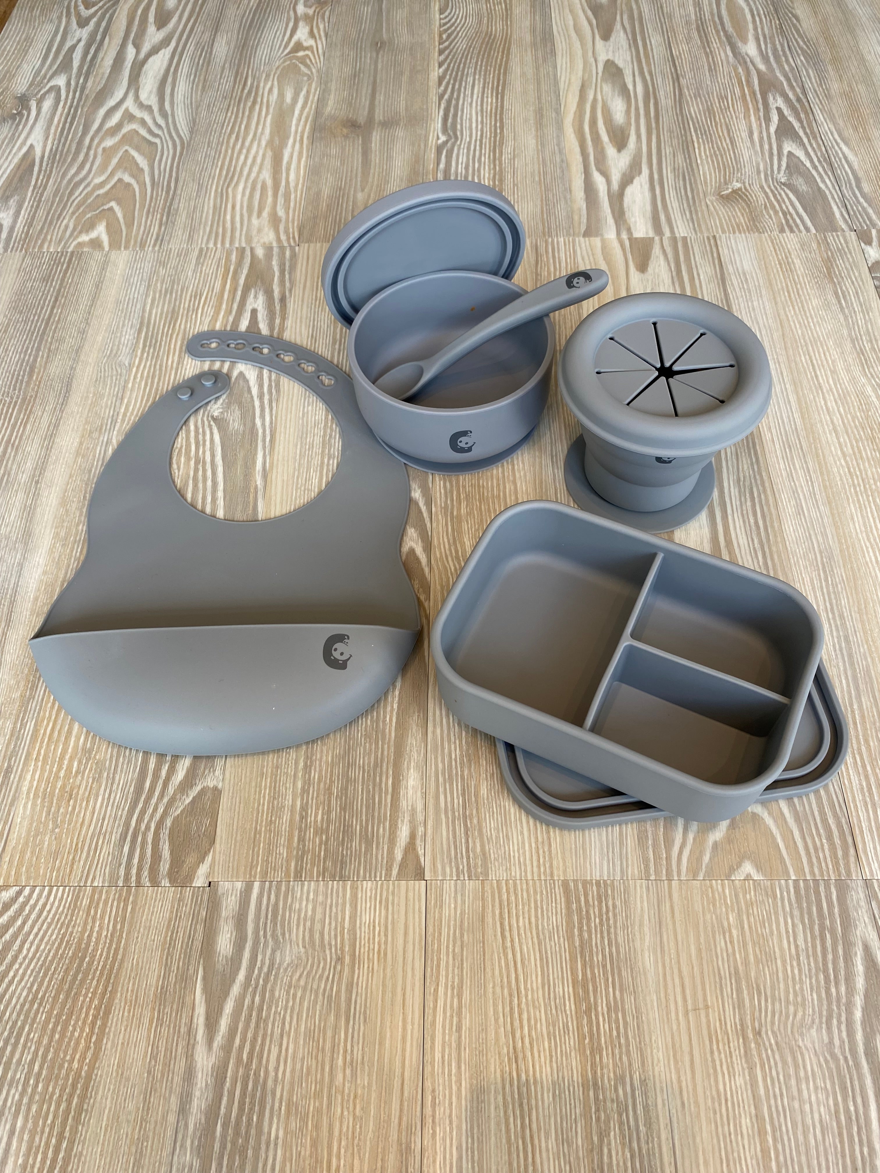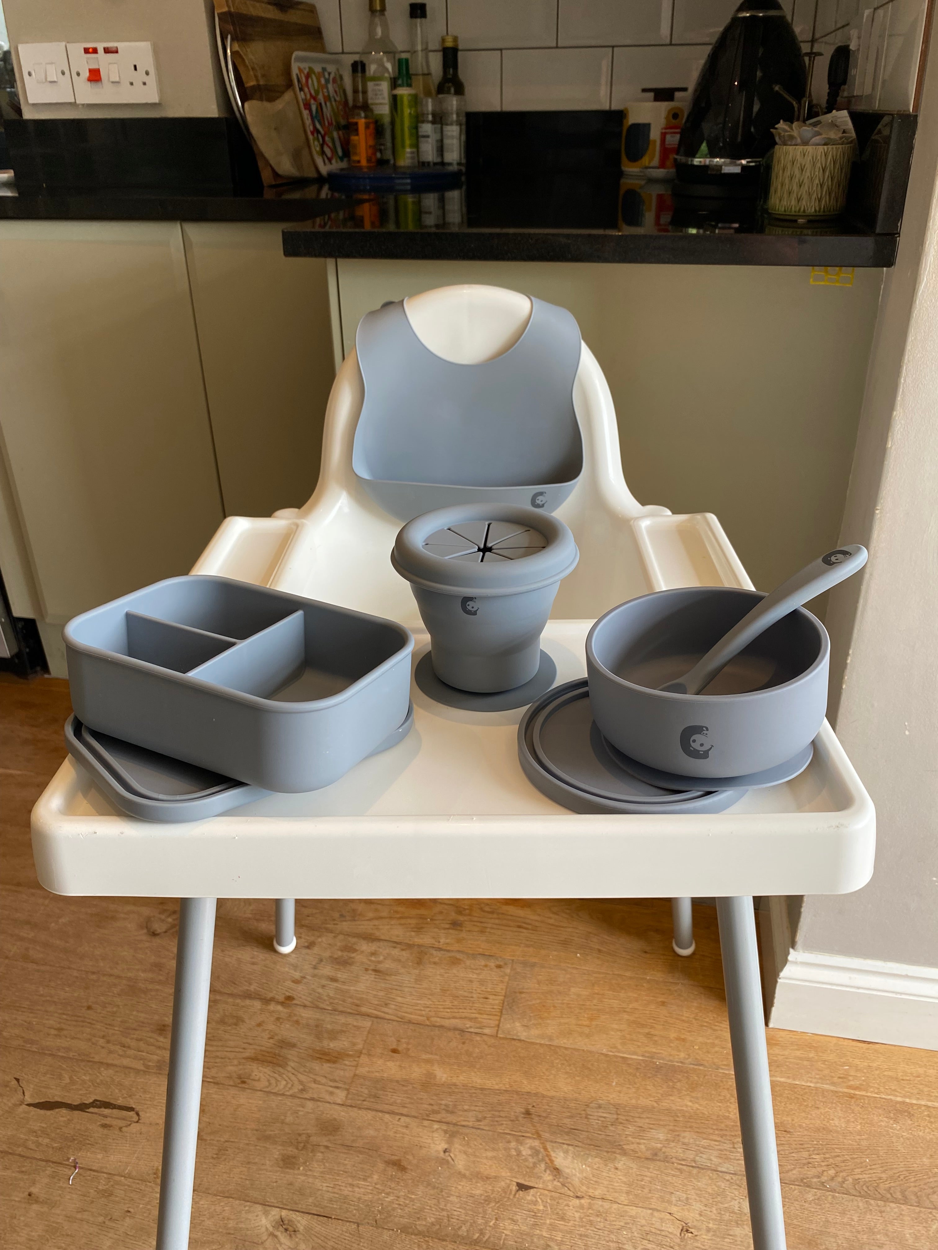 “The silicone set has been really useful for us , The quality is superb and really does stick to the high chair. highly recommend