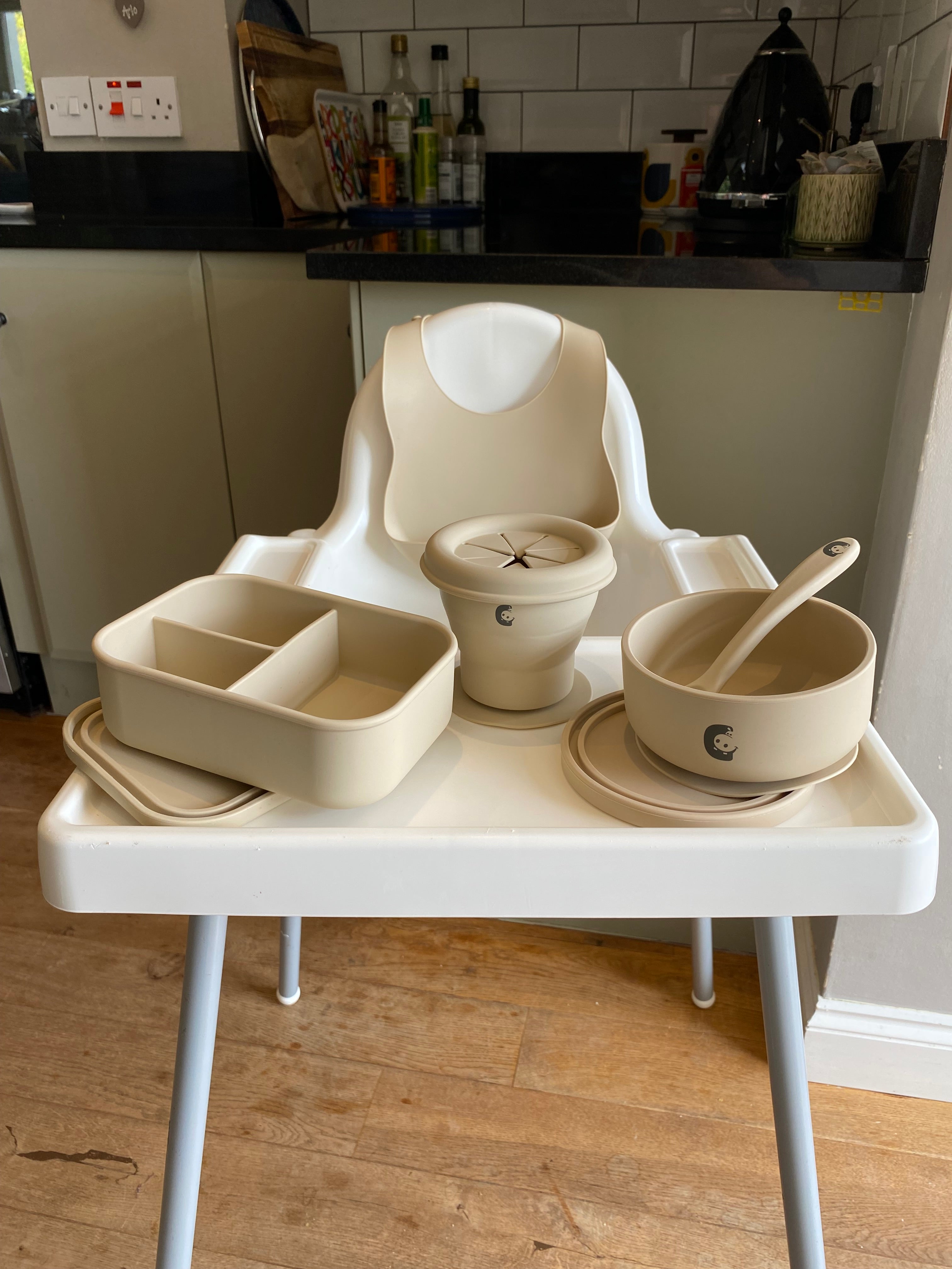 “The silicone set has been really useful for us , The quality is superb and really does stick to the high chair. highly recommend