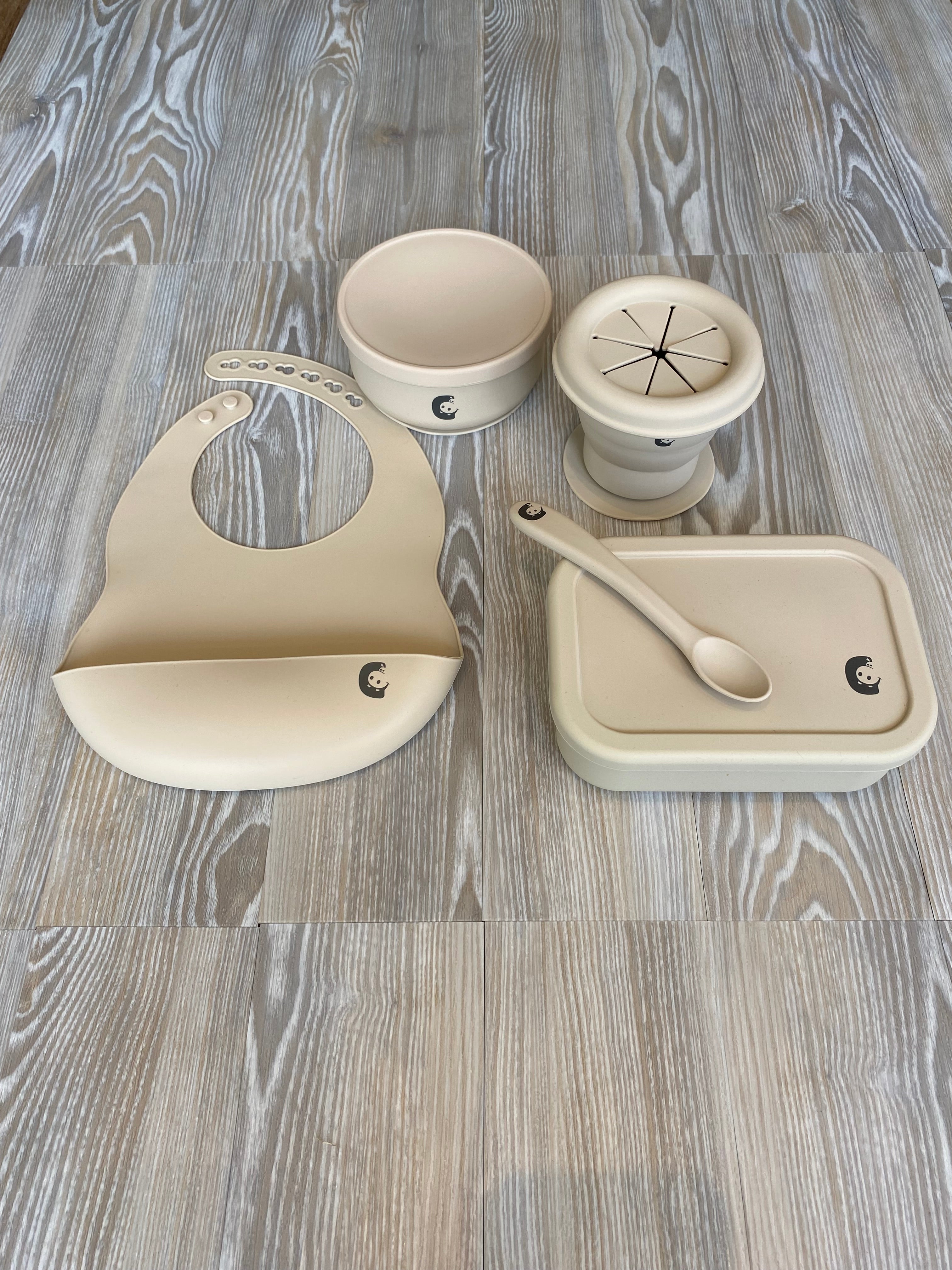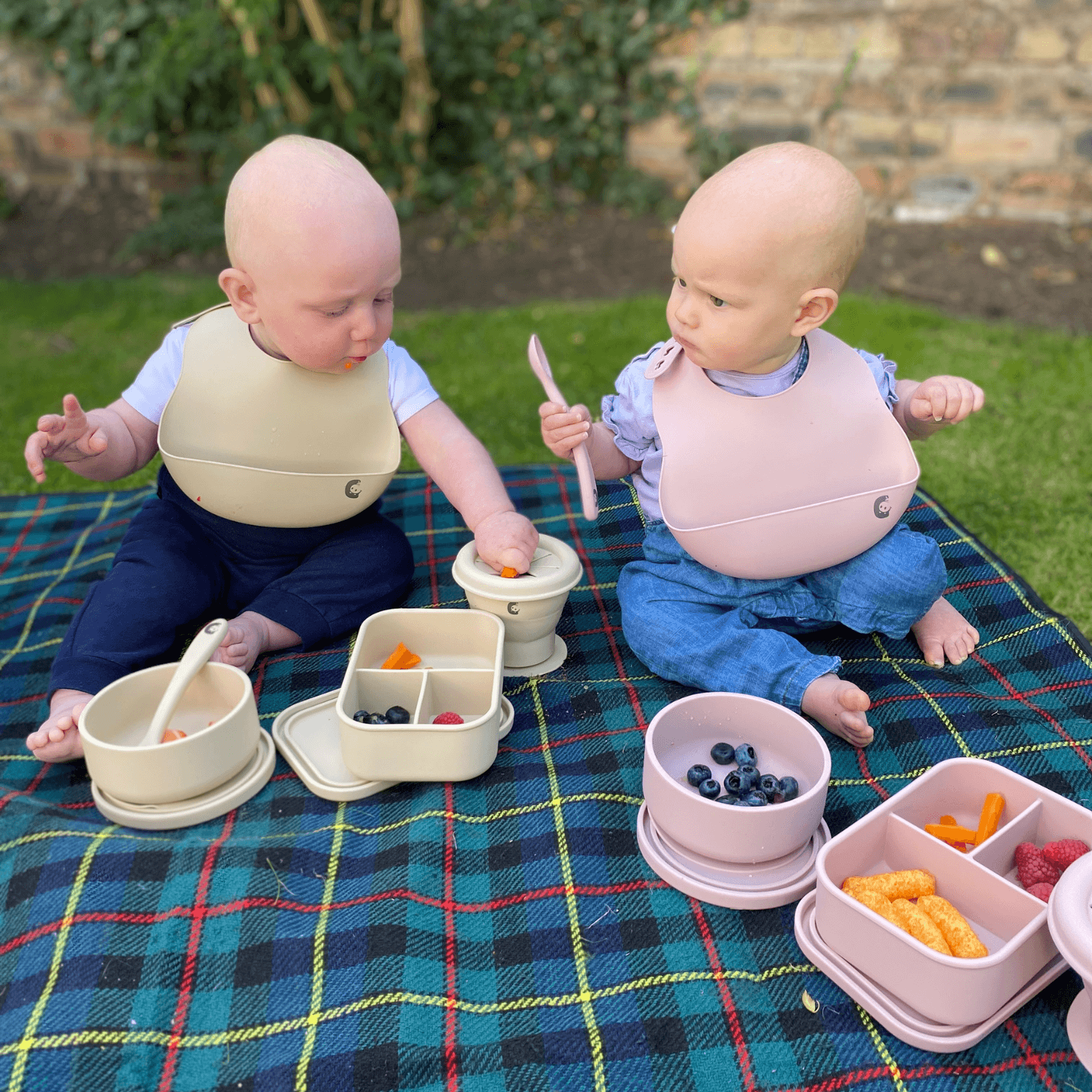 Feeding on the go? Our Handy Silicone Weaning & Snack Set Will Make Your Life Easier! Everything you need when you're out and about to keep hanger at bay.