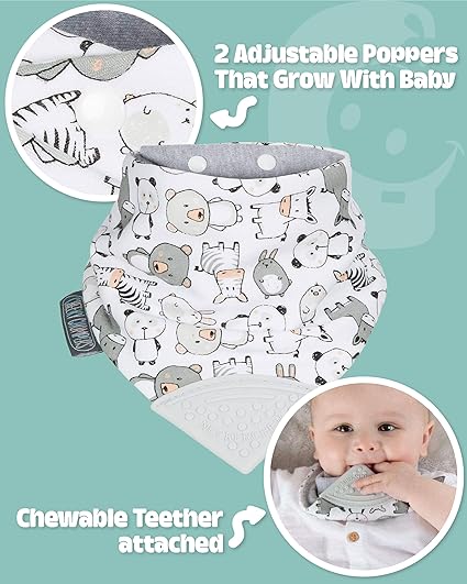 “Would definitely recommend this bib. Lovely design, soft material but totally absorbent, and the attached teether Is a genius idea!