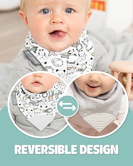 Our premium quality, award winning teething dribble bibs are made with 3 super absorbent layers to catch all those drools and keep your baby dry. What's more the reversible design means you get two baby bibs in one for all day wear and to match a range of outfits.