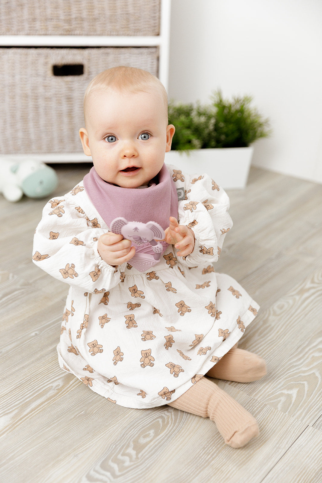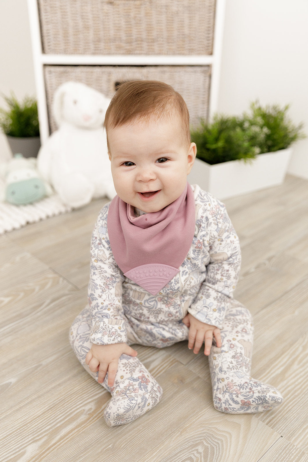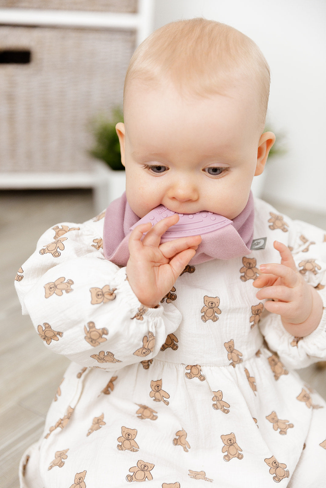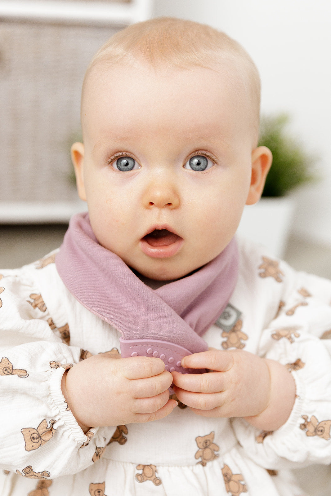“Would definitely recommend this bib. Lovely design, soft material but totally absorbent, and the attached teether Is a genius idea!