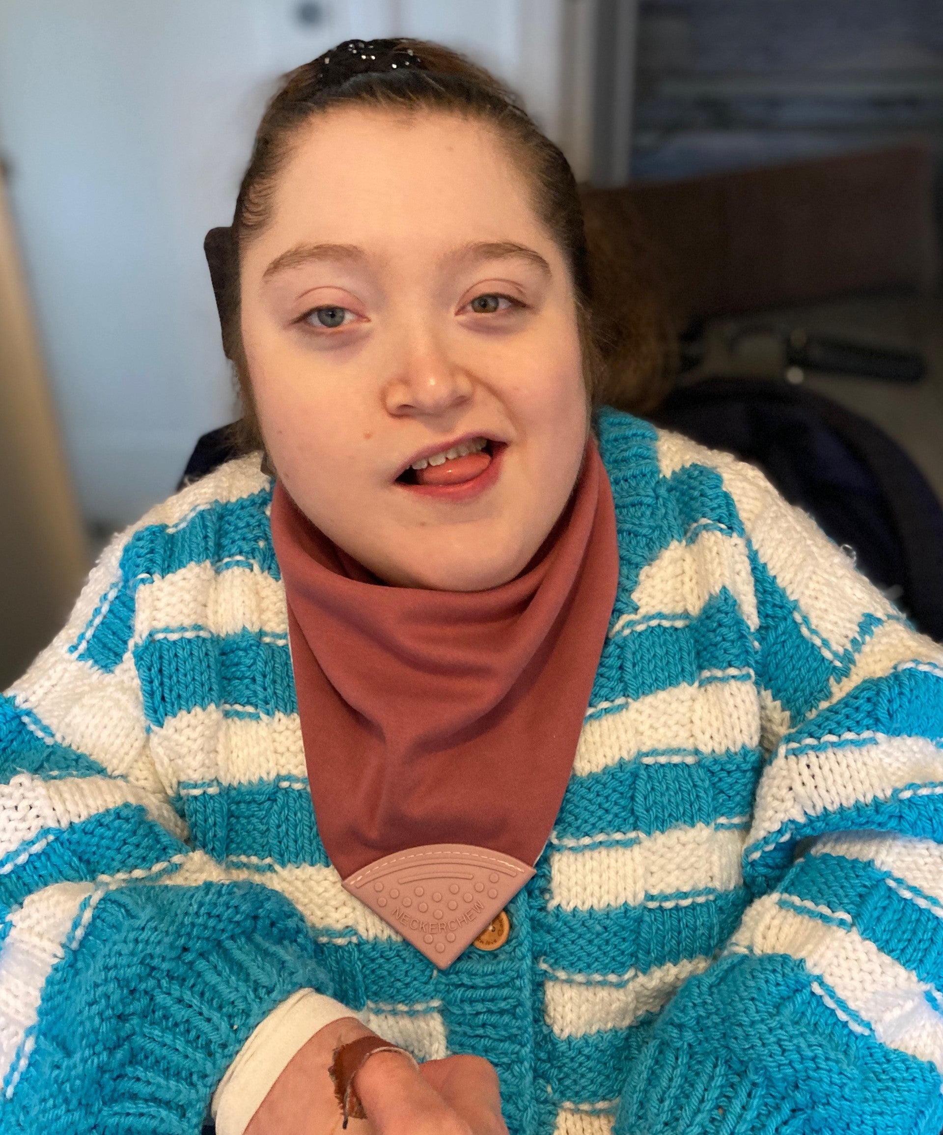 Our all needs Neckerchew with an oral sensory chew is a super absorbent dribble bib.