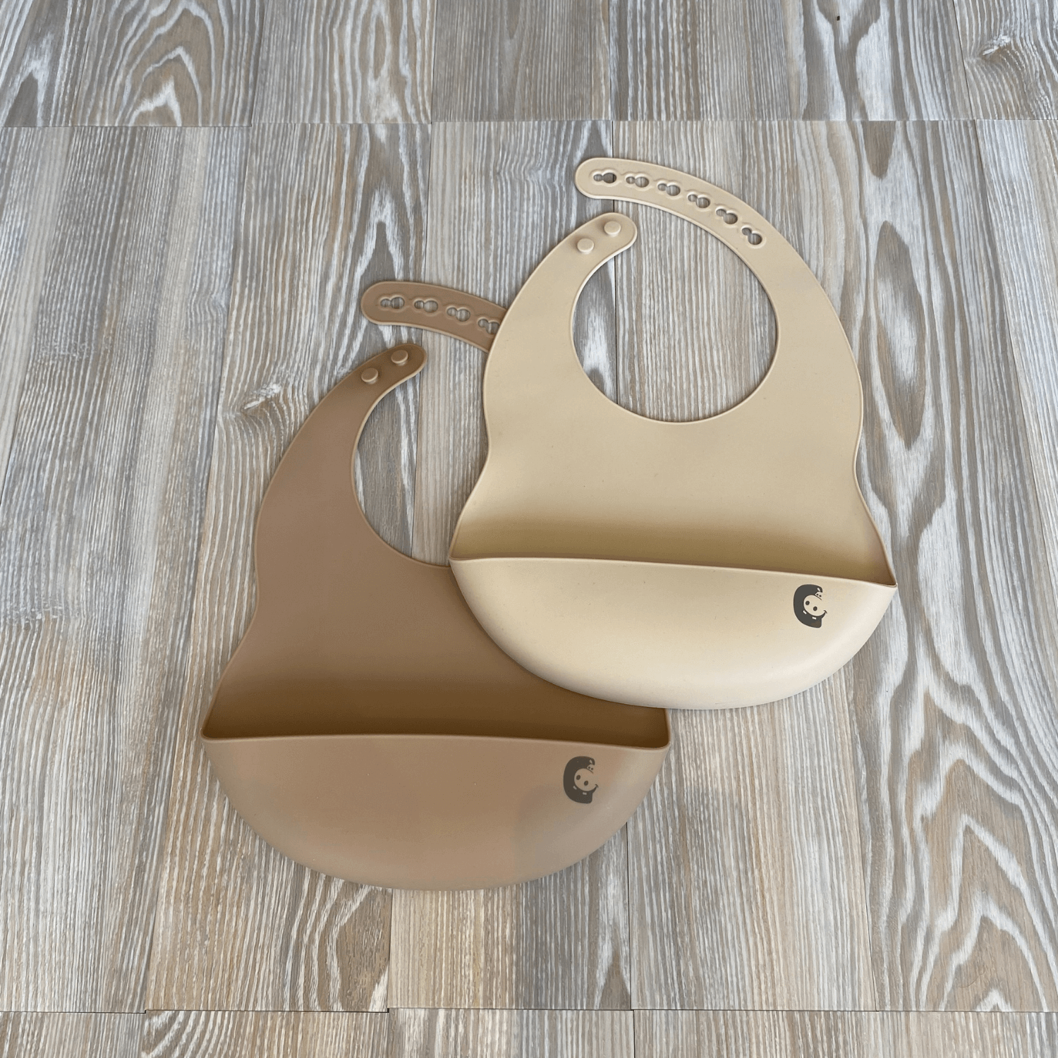 Silicone Feeding Bibs - Sand & Mocha 2 Pack